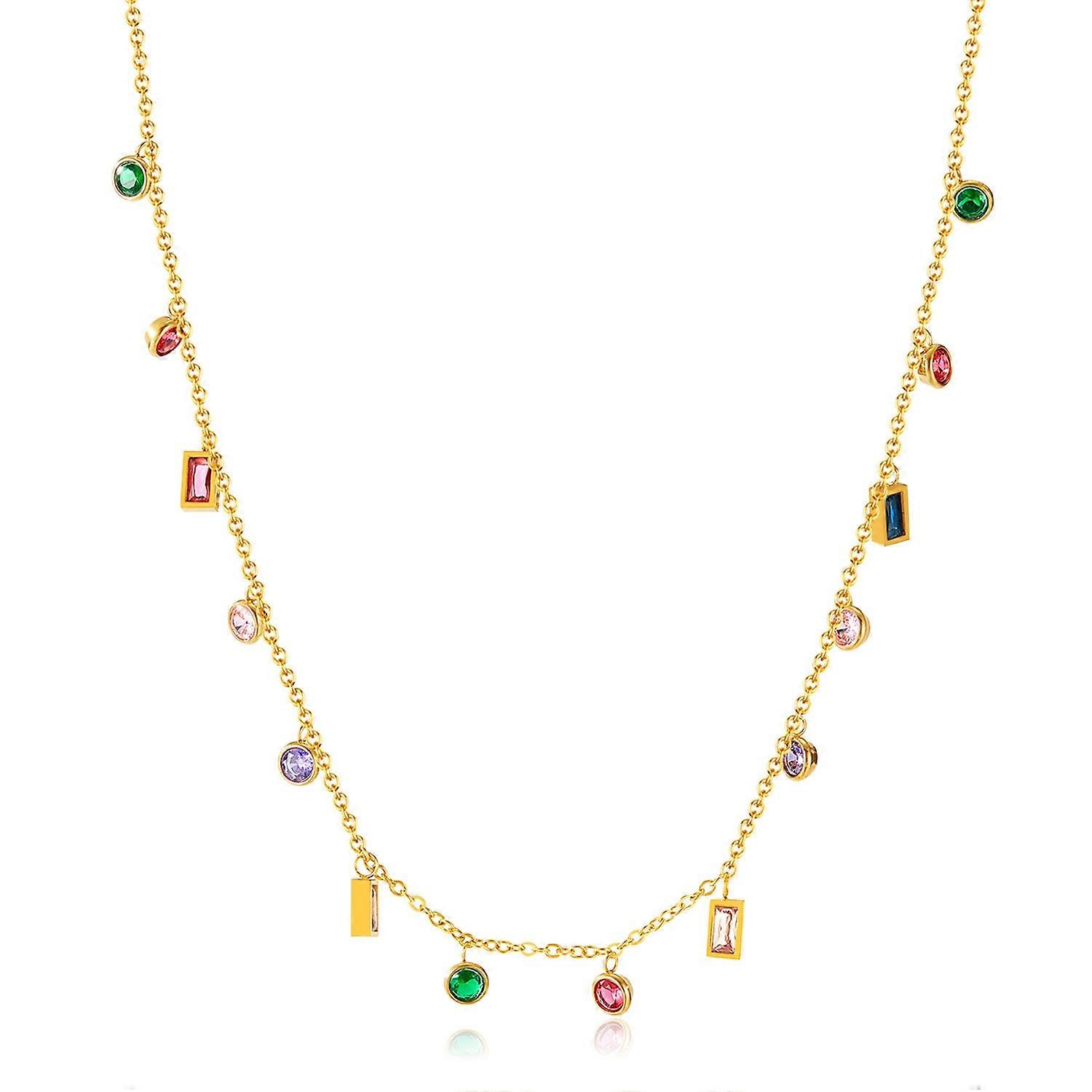 (New arrival) Colorful Dopamine Zirconia Small Accessories Stainless Steel Collarbone Chain GX2429