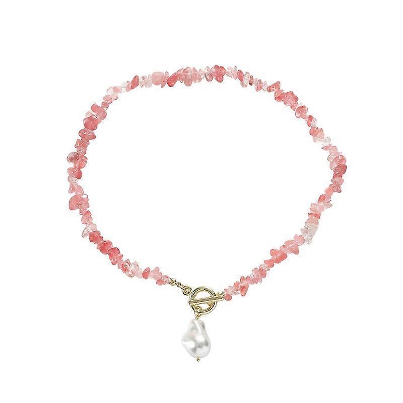 (New arrival) Boho Colorful Broken Natural Stone Necklace, Model: N2206-8 Pink Stone