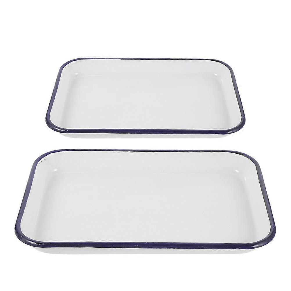 2pcs Rectangular Non Stick Enamel Roasting Tray Heat Resistant Baking Pan for Kitchen and Restaurant Oven Use