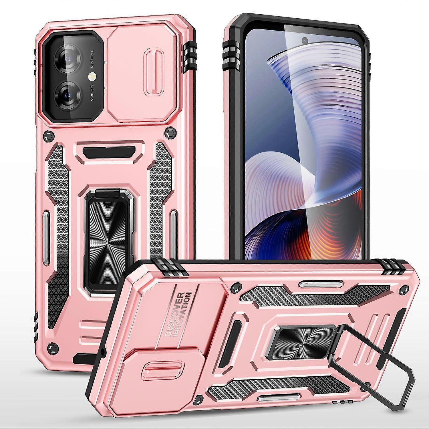 For Motorola Moto G55 5G Case Kickstand Slide Lens Lid PC + TPU Drop-Proof Phone Cover - Rose Gold