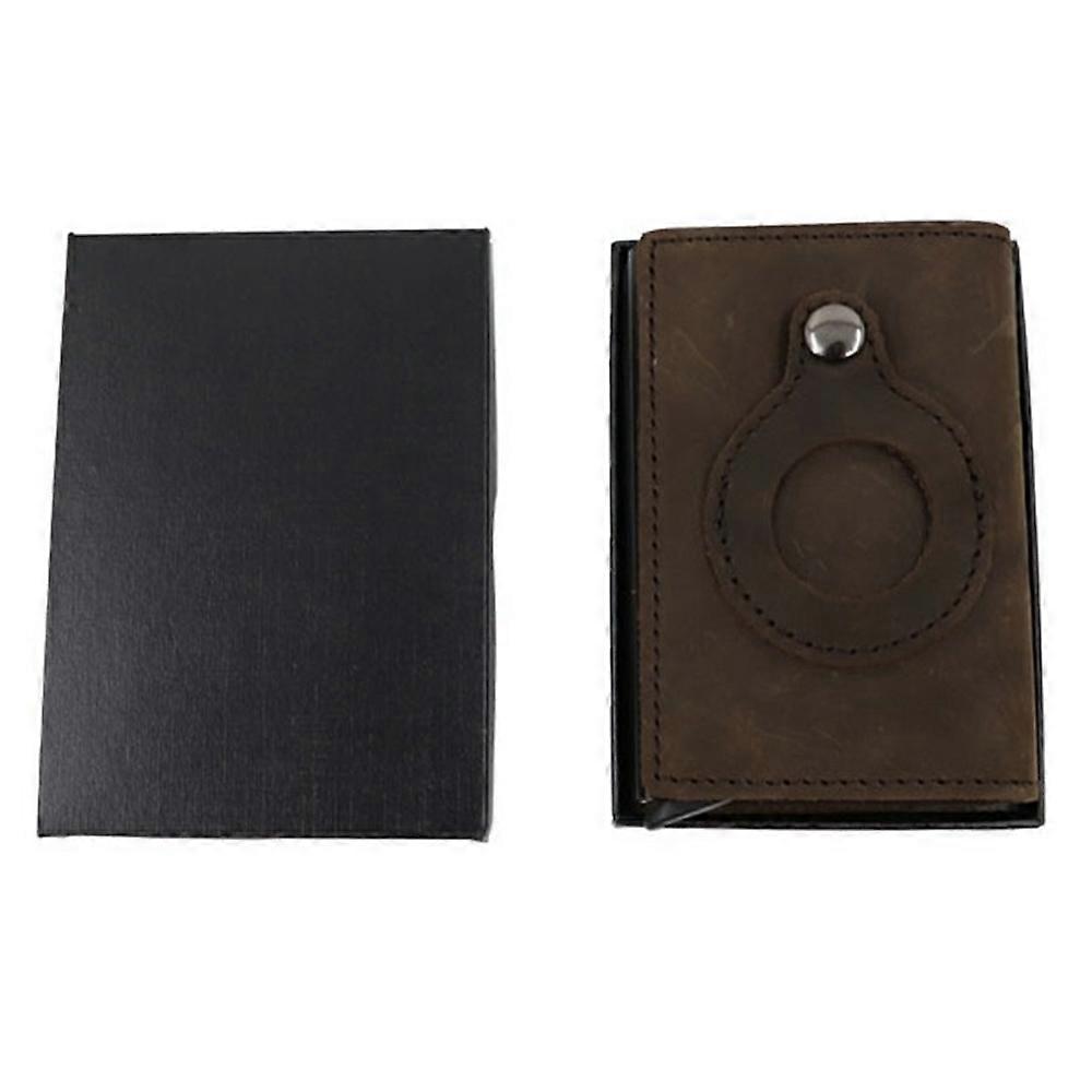 For AirTag Tracker Card Holder Genuine Leather Aluminum Case Wallet Slim Bifold Storage Pouch - Tan