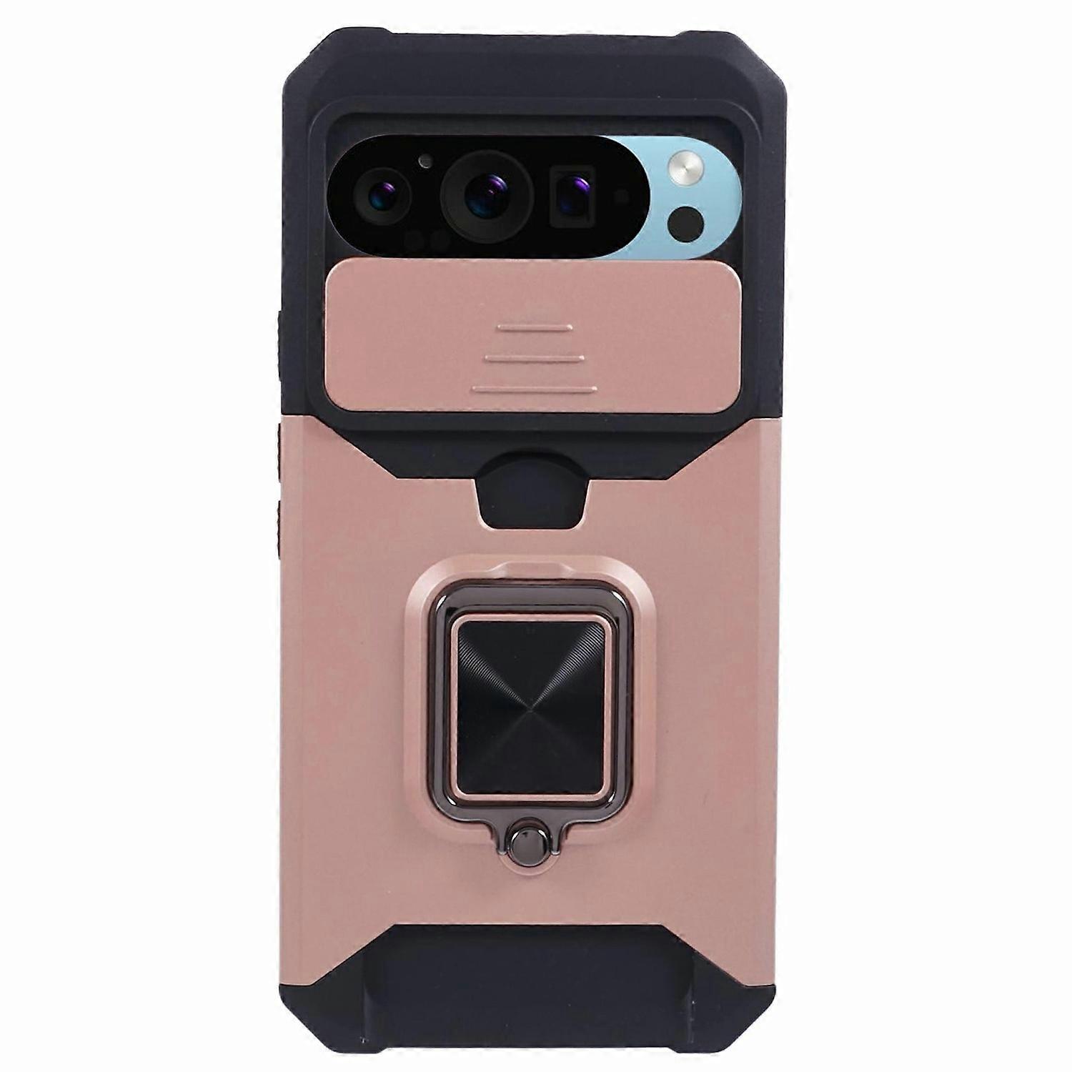 For Google Pixel 10 Pro XL Case Kickstand Slide Lens Lid PC + TPU Phone Cover with Card Slot - Rose