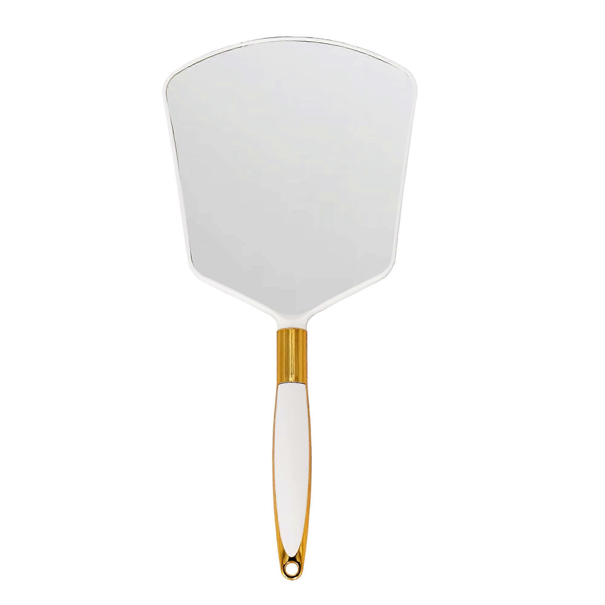 Handheld Mirror with Handle for Salon, Compact Lightweight Barber Mirror with Ergonomic Grip (White)