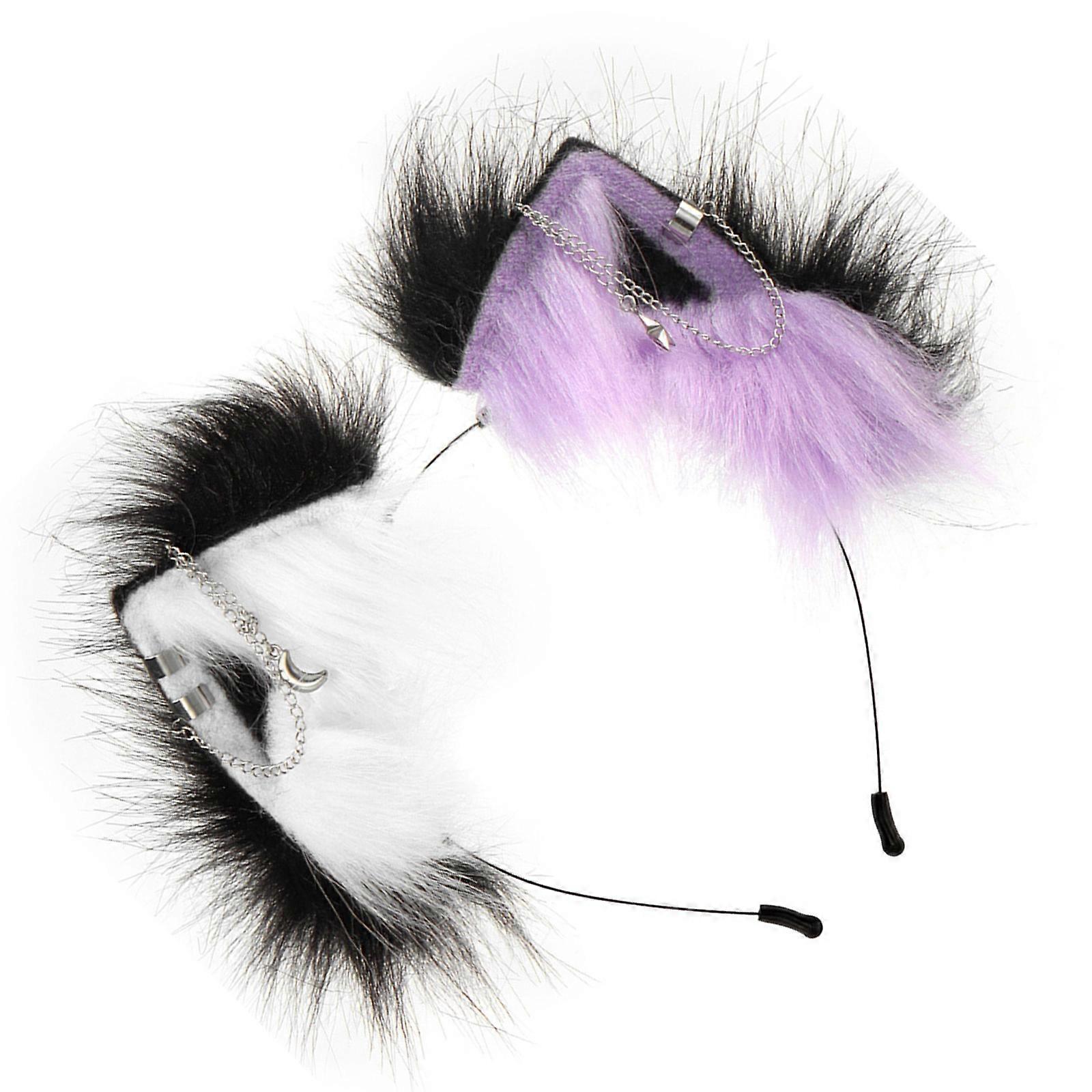 Handmade Double Color Faux Furs Cats Ears Hairpins Realistic Faux Furs Cats Ear Clip for Birthdays Cosplay Event White purple