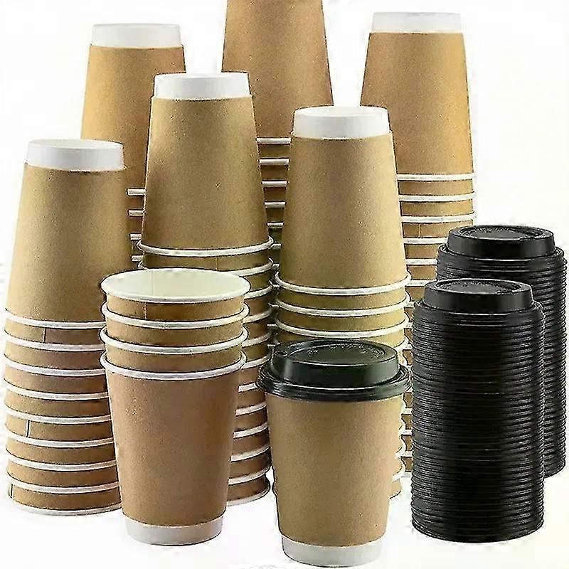 8/10/12/16oz Cups Kraft Paper Cups Disposable Paper Cups with Lids Coffee Milk Cup Paper Cup For Hot Drinking Party Supplies Material: Kraft paper + PP Product name: Double-layer insulated kraft paper coffee cup Capacity: 8OZ/10OZ/12OZ/16OZ Product size: 8OZ about 300ml: bottom 5.6cm, top 9cm, height 8.5cm 10OZ about 350ml: bottom 5.9cm, top 9cm, height 9.7cm 12OZ about 390ml: bottom 5.9cm, top 9cm, height 10.9cm 16OZ about 500ml: bottom 5.9cm, top 9cm, height 13.6cm PP lid: diameter 9cm Product description: 1. Adopt waterproof kraft paper inner coating to avoid leakage after long-term contact with liquid; PP lid is more airtight than ordinary plastic lid; 2. Double-layer design has strong pressure resistance and is not easy to deform, suitable for take-out. The hollow layer blocks heat transfer to avoid hot hands when holding high-temperature drinks, and cold drinks can also reduce condensation water seepage; 3. The natural texture of kraft paper is matched with black or white lid, which is environmentally friendly and exquisite; 4. Suitable for Coffee shop/tea shop: mainly take-out hot drinks (latte, American) or cold drinks (ice coffee, milkshake), etc. Fast food chain/convenience store: with breakfast set, light meals Daily office: replace disposable plastic cups, environmentally friendly and durable, suitable for multiple short-term use (such as self-service coffee machines). Outdoor scene: as a portable cup during camping and picnics, taking into account the needs of insulation and lightness. Family scene: temporarily entertain guests or make homemade drinks, avoiding the trouble of washing traditional cup. _x005f_x000D_