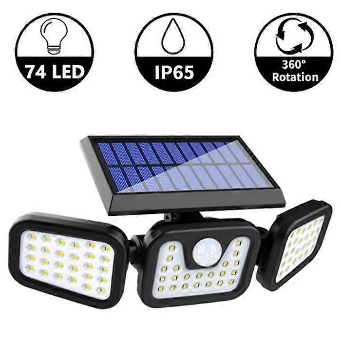 VIVOHOME Solar Flood Lights Outdoor, 256 LED 2500LM Motion Sensor Lights, 3 Adjustable Heads Security Lights, IP65 Waterproof, 270 Wide Lighting Angle