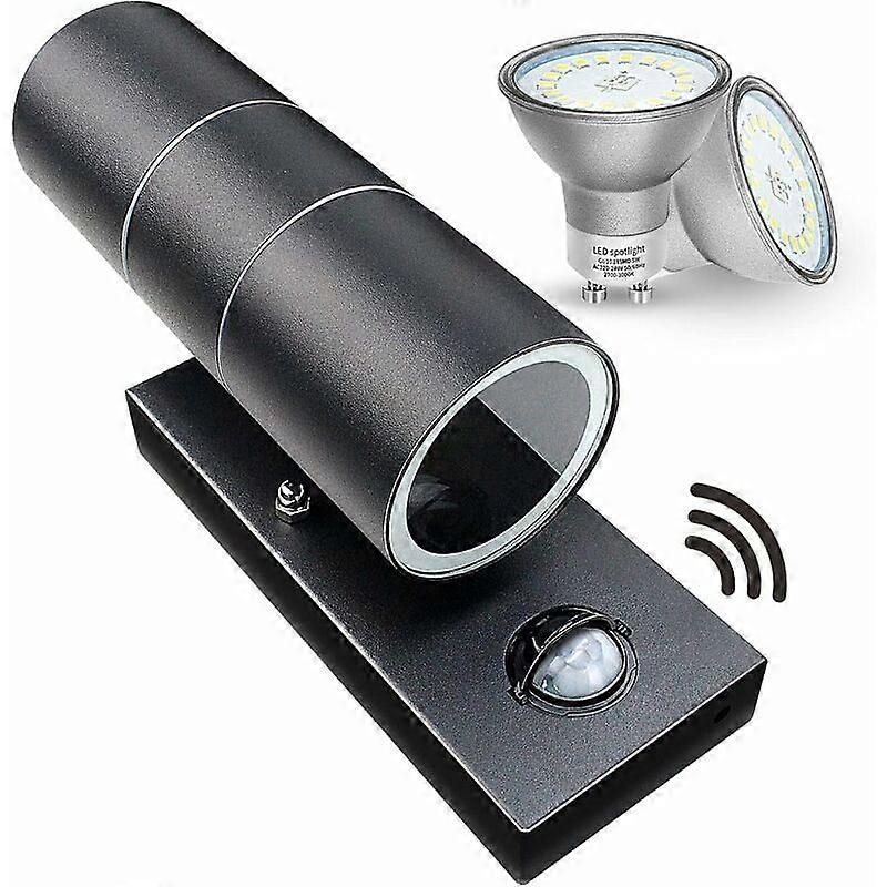 Outdoor Wall Sconce Cylinder Shape Stainless Steel Waterproof Lighting Fixture with Motion Sensor Exterior Lantern for Front Door Garage and Porch(Bla