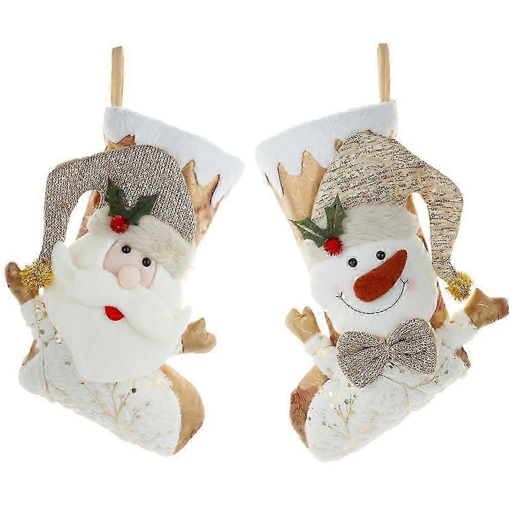 Festive Stockings for Christmas 2Pcs Santa Claus Snowman Pattern