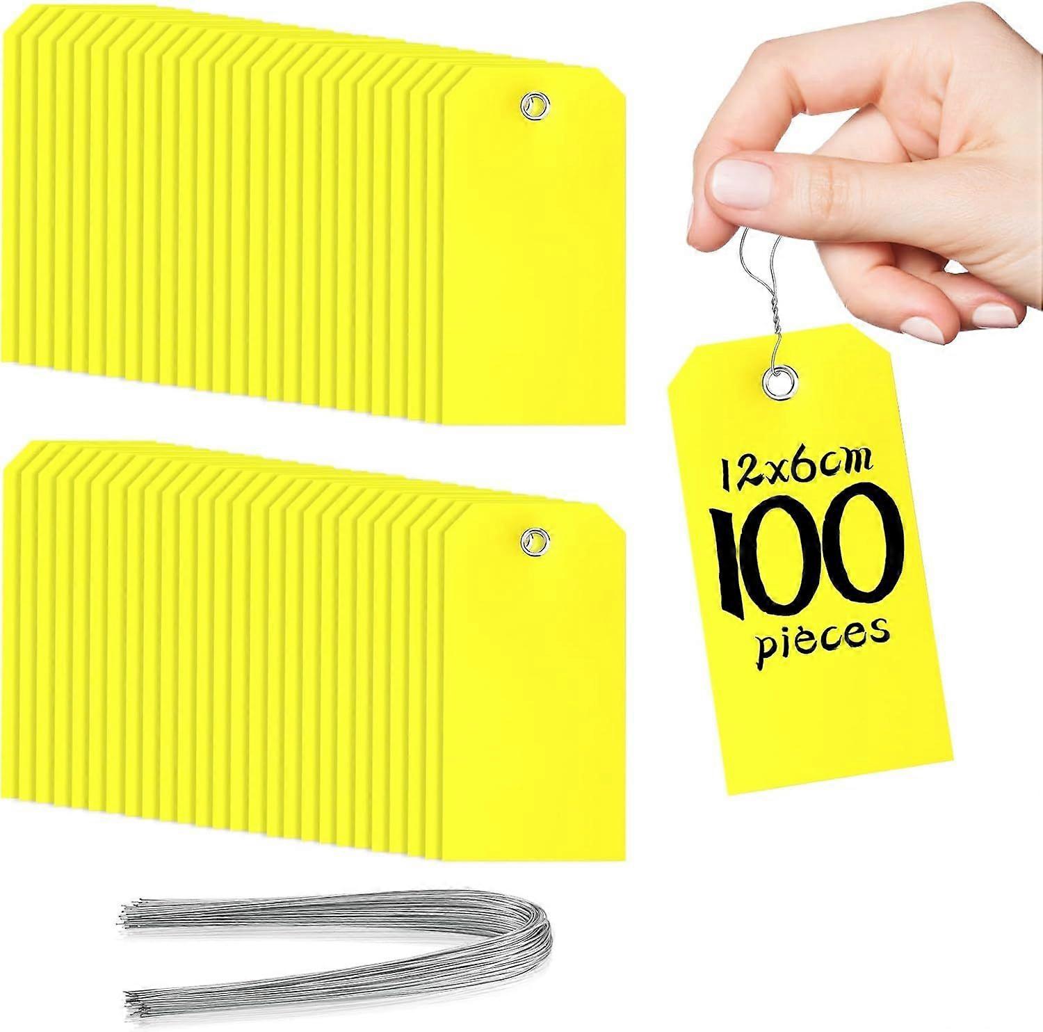 Lot of 100 Etiquettes 120 x 60 mm Jaunes Avec Fil De Fer - Prix en Plastique Rigide Pour Vidange - Solides paisses et Durables