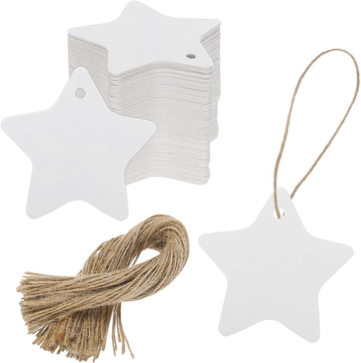 100Pcs Etiquettes Cadeau en Papier Kraft Avec Cordon 2.4x2 Pouces Etiquettes en Papier Pentagramme Blanc pour Etiquettes de Prix Cadeaux de No Faveurs