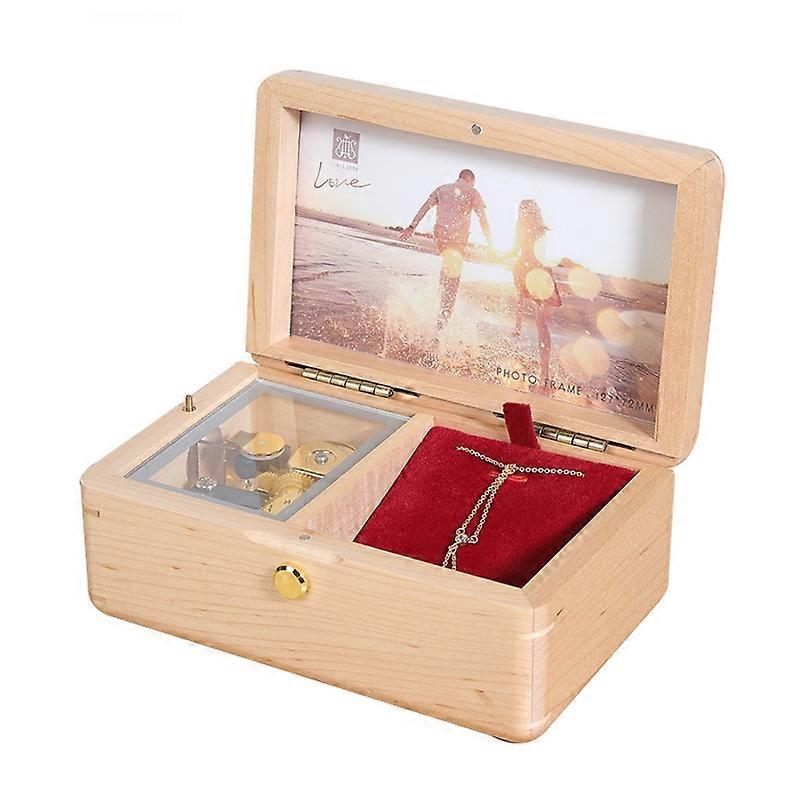 Wooden Jewelry Storage Music Box with Photo Frame Function, Spec: Maple+Necklace Flannel 1.Material: maplewalnutrosewood, hardware 2. Process: grinding 3. Made of natural solid wood, the texture is delicate, the color is soft and beautiful 4. Three-dimensional wrap-around fine polishing and fine grinding, the whole body is smooth and delicate, and the touch is comfortable and round 5. Three kinds of wood materials, you can choose according to your preference 6. You can use the suction cup to take out the photo holder and replace it with your favorite photo 7. Dimensions: Music Box: 14 x 9 x 6 cm, Photo: 12.7 x 7.2 cm 8. Weight: about 500 grams 9. Note: Only the music box will be sent for delivery, nothing else!