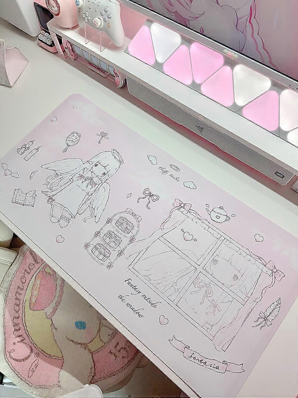 New Cartoon Original Girl Angel Mouse Pad Oversized Waterproof Non-slip Office Study Table Mat PU Lovely Key Mouse Tray Pad