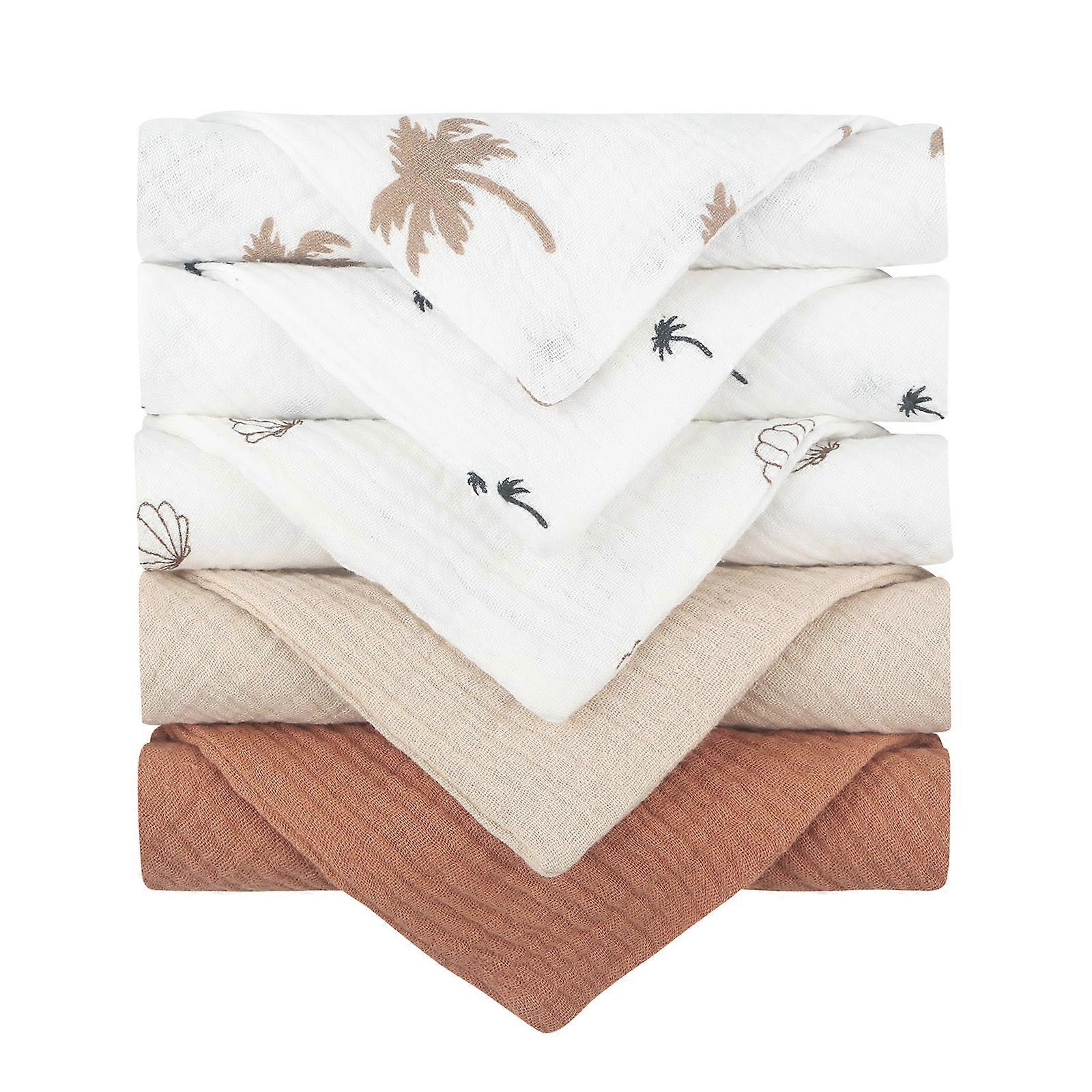 Infant Wash Cloth Cotton Square Face Towel Baby Muslin-Handkerchief Feeding Bibs Skin Friendly Nursing Burp Cloths 5PCS Multicolor