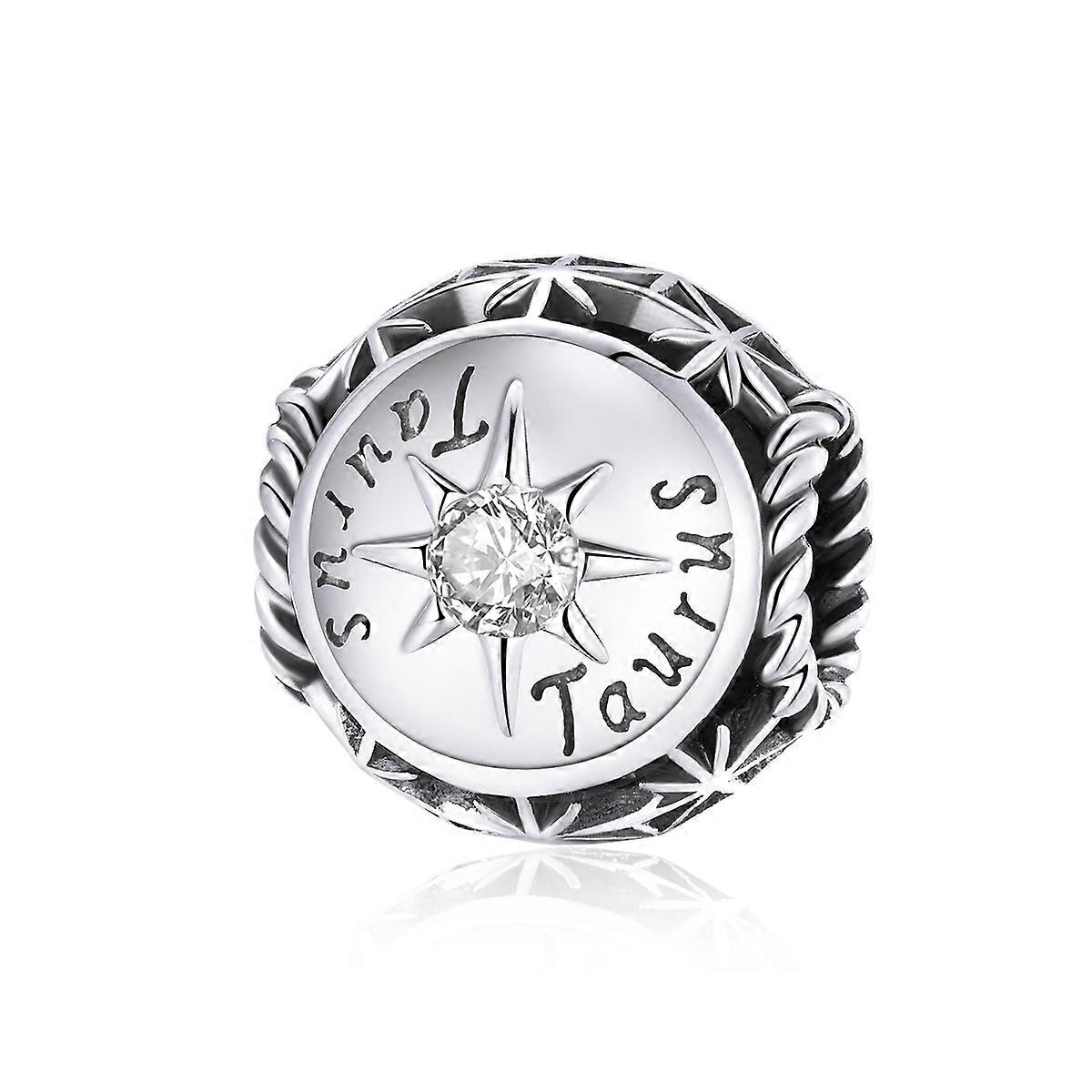 S925 Sterling Silver Twelve Constellation Zircon Beads DIY Bracelet Necklace Accessories, Style:Taurus