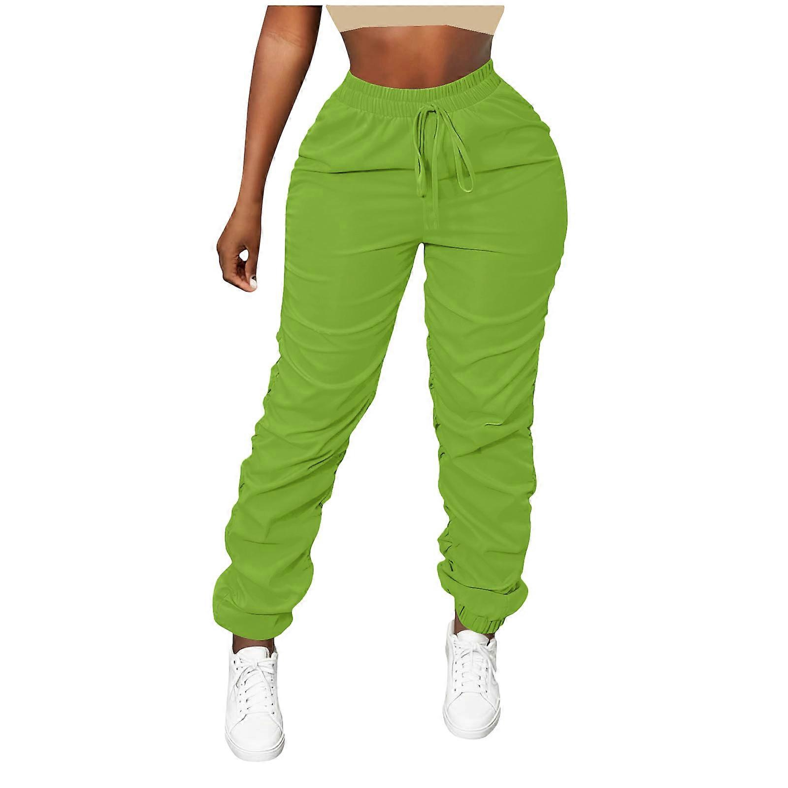 Womens Pants Pleated Trousers Elastic Drawstring Jogger Casual Hiking Pants Punk Streetwear Yellow green XL