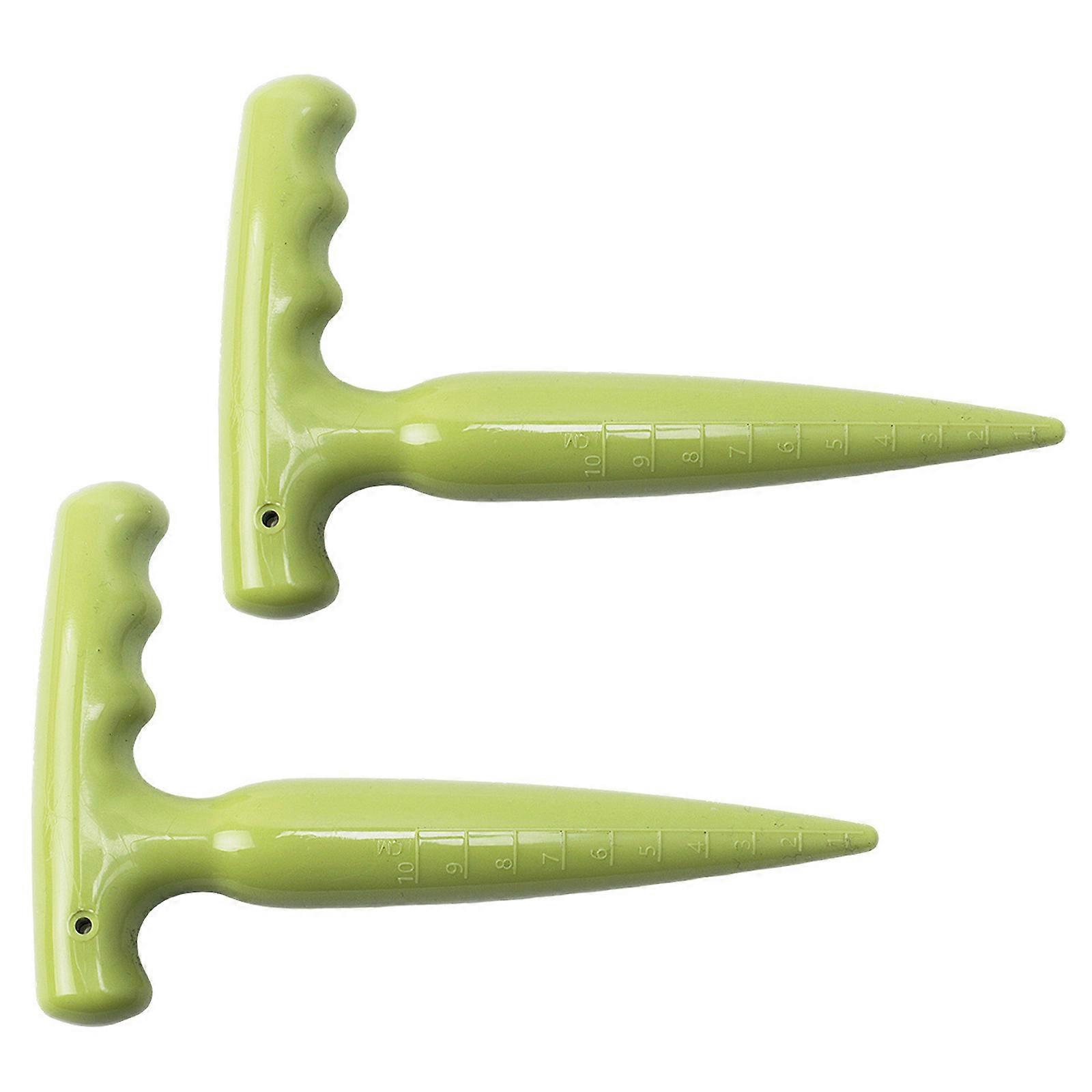 Features: This garden hole digger features a long handle design for superior grip and comfort, reducing fatigue by allowing users to plant seeding without bending over, making it an essential tool for efficient gardening. Crafted from high strength plastic, the sowing tool ensures precise hole digging in soil for uniform or seedling placement, promoting healthy growth and versatility across flowers, vegetables, and lawns. Ideal for gardeners, hobbyists, and home growers seeking ergonomic and manual planting implements for everyday horticultural tasks. Perfect for scenarios like sowing seeding in flower beds, vegetables, or establishing new lawns in various garden environments with ease and accuracy. Its lightweight, corrosions resistant construction and smooth surfaces enable easy cleaning and maintenance, ensuring durability for long term use as a manual planter. Specifications: Component: Plastic. Color: Dark Green, Grass Green Size:Approx.11cm/4.33''x17cm/6.69'' Package Includes: 2Pcs Dibber Stick note: Please allow 1mm errors due to manual measurement. Due to the differences between different monitors, the picture may not reflect the actual color of the item.