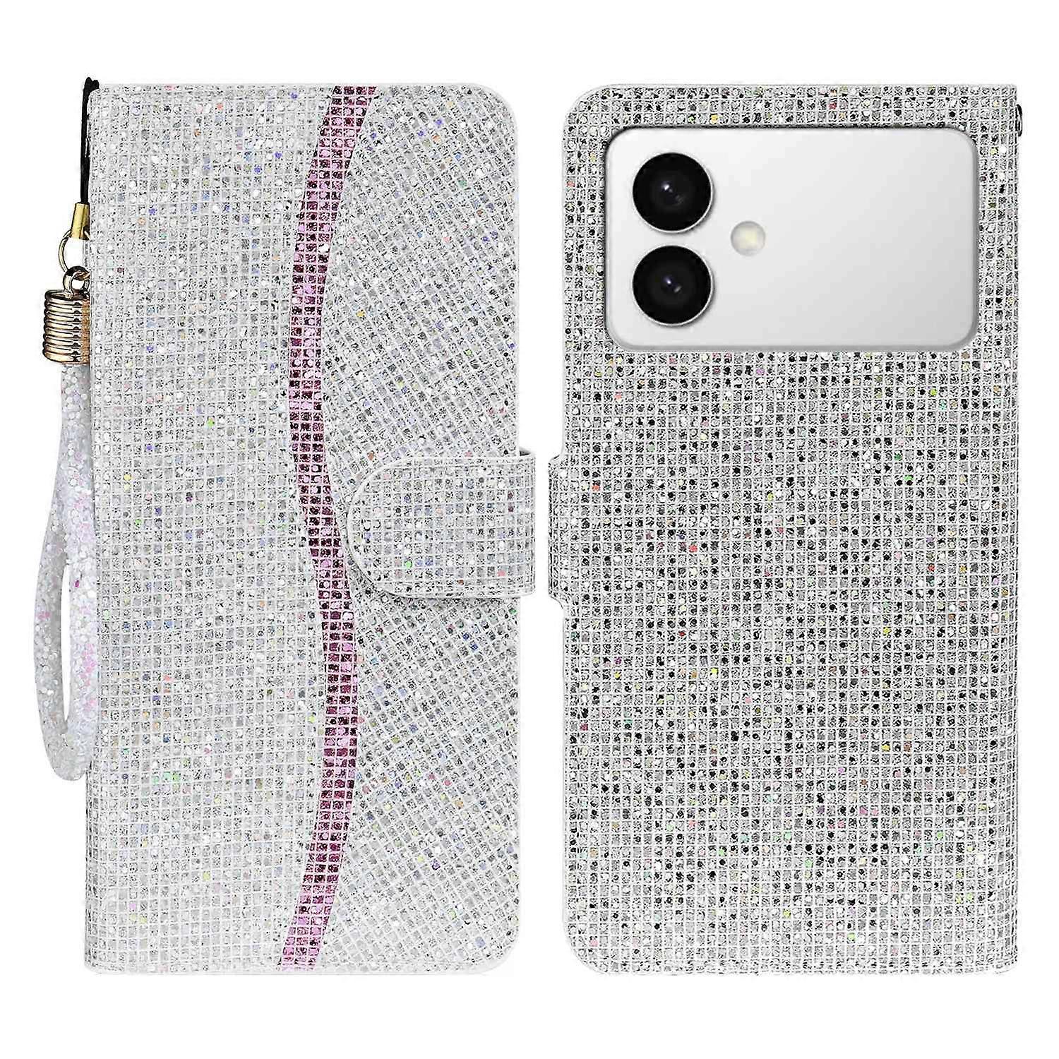 For Samsung Galaxy S26 Edge Case PU Leather Wallet Card Slots Glitter Phone Cover