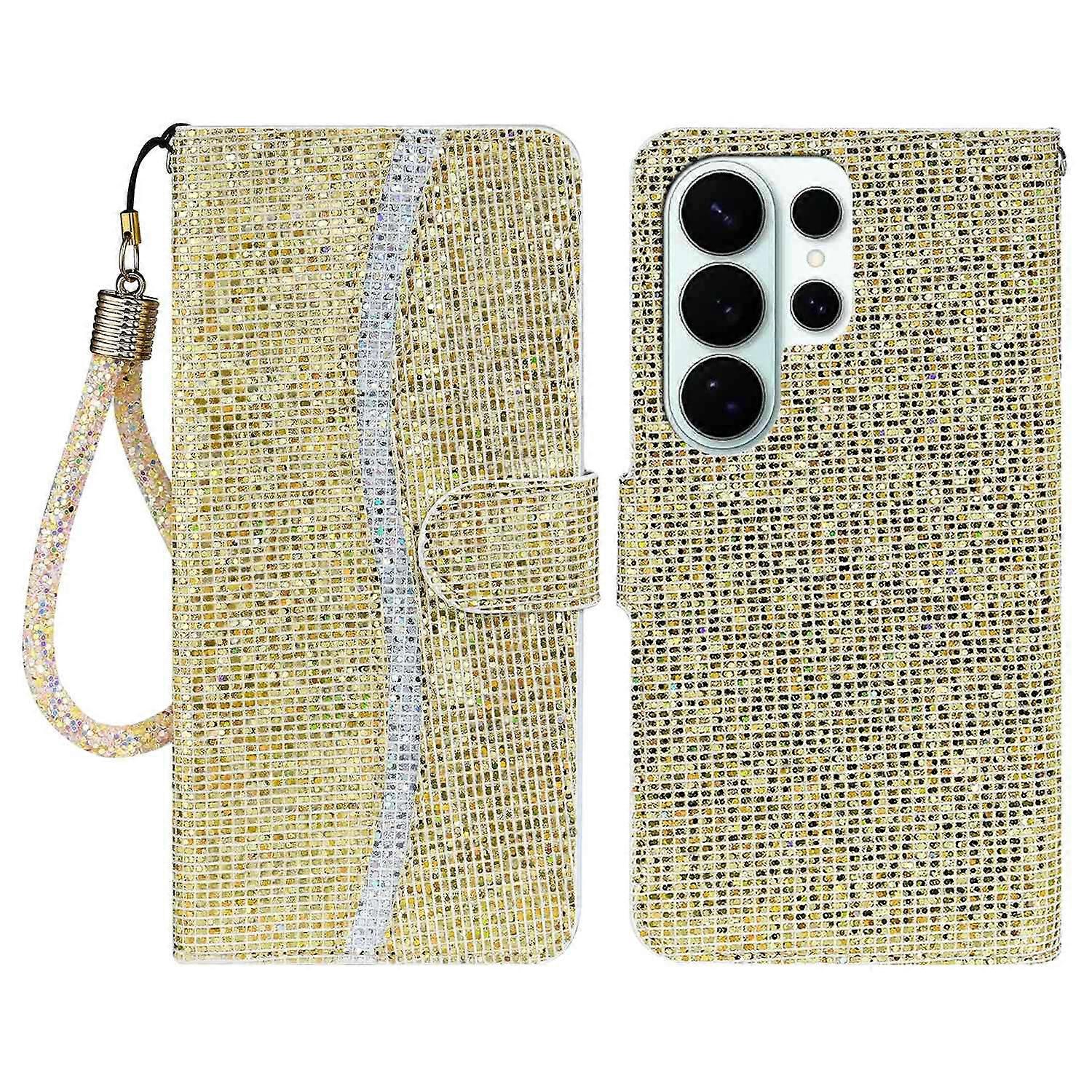 For Samsung Galaxy S26 Ultra Case PU Leather Wallet Card Slots Glitter Phone Cover