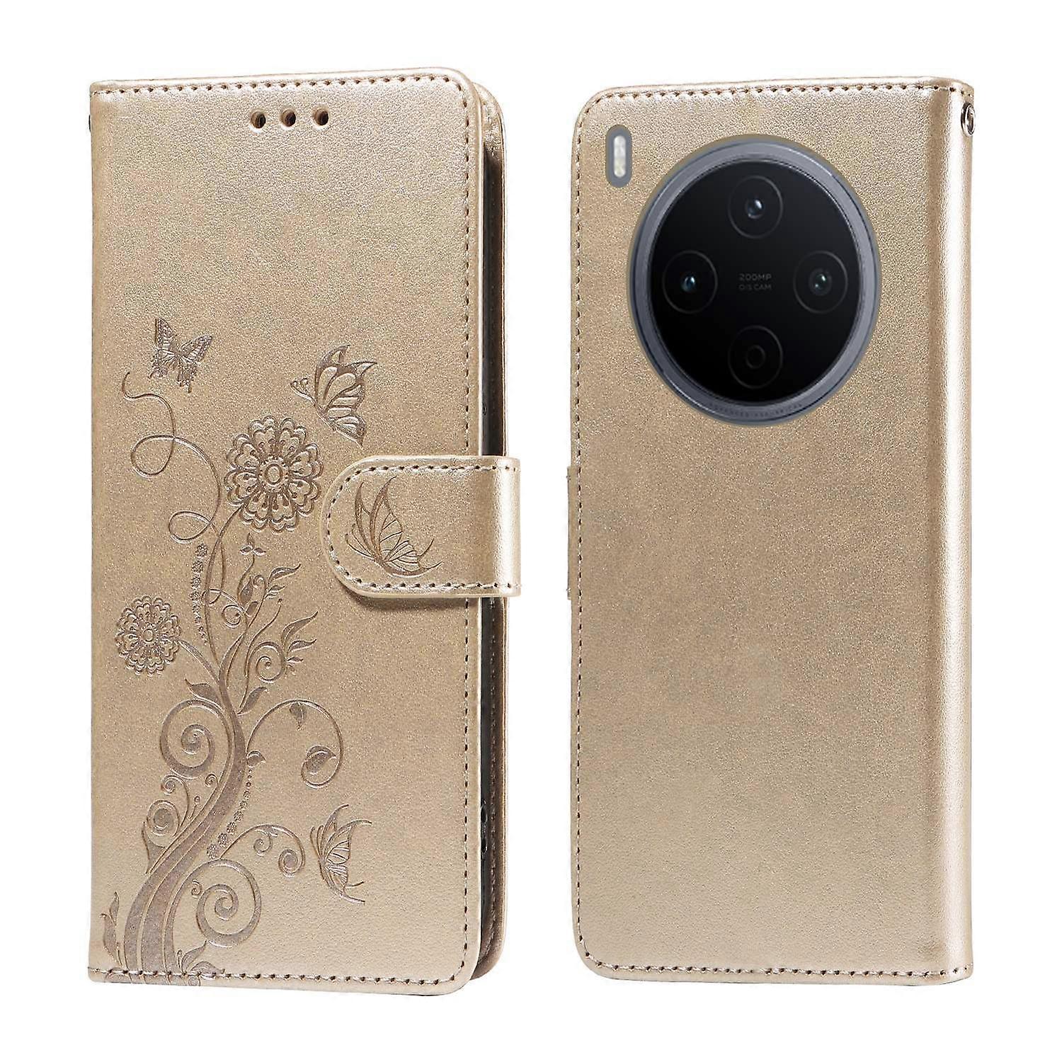 For vivo Y500 Pro 5G Leather Case Butterfly Floral Imprint Wallet Stand Cover
