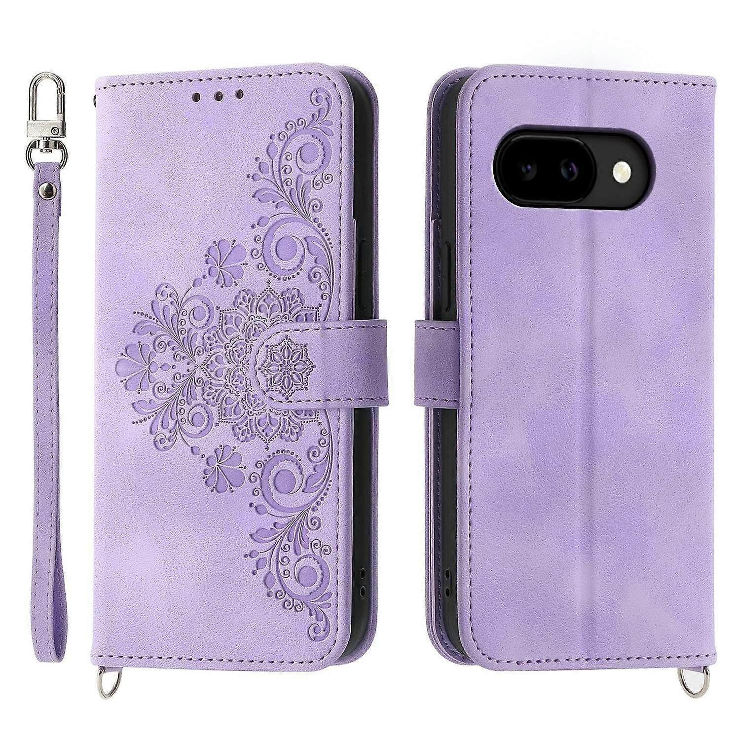 For Google Pixel 10a Case Flower Pattern PU Leather Wallet Phone Cover with Strap
