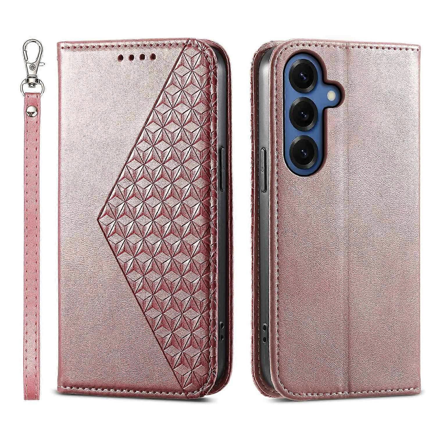 For Samsung Galaxy S26 Case Calf Texture PU Leather Wallet Phone Cover with Wrist Strap