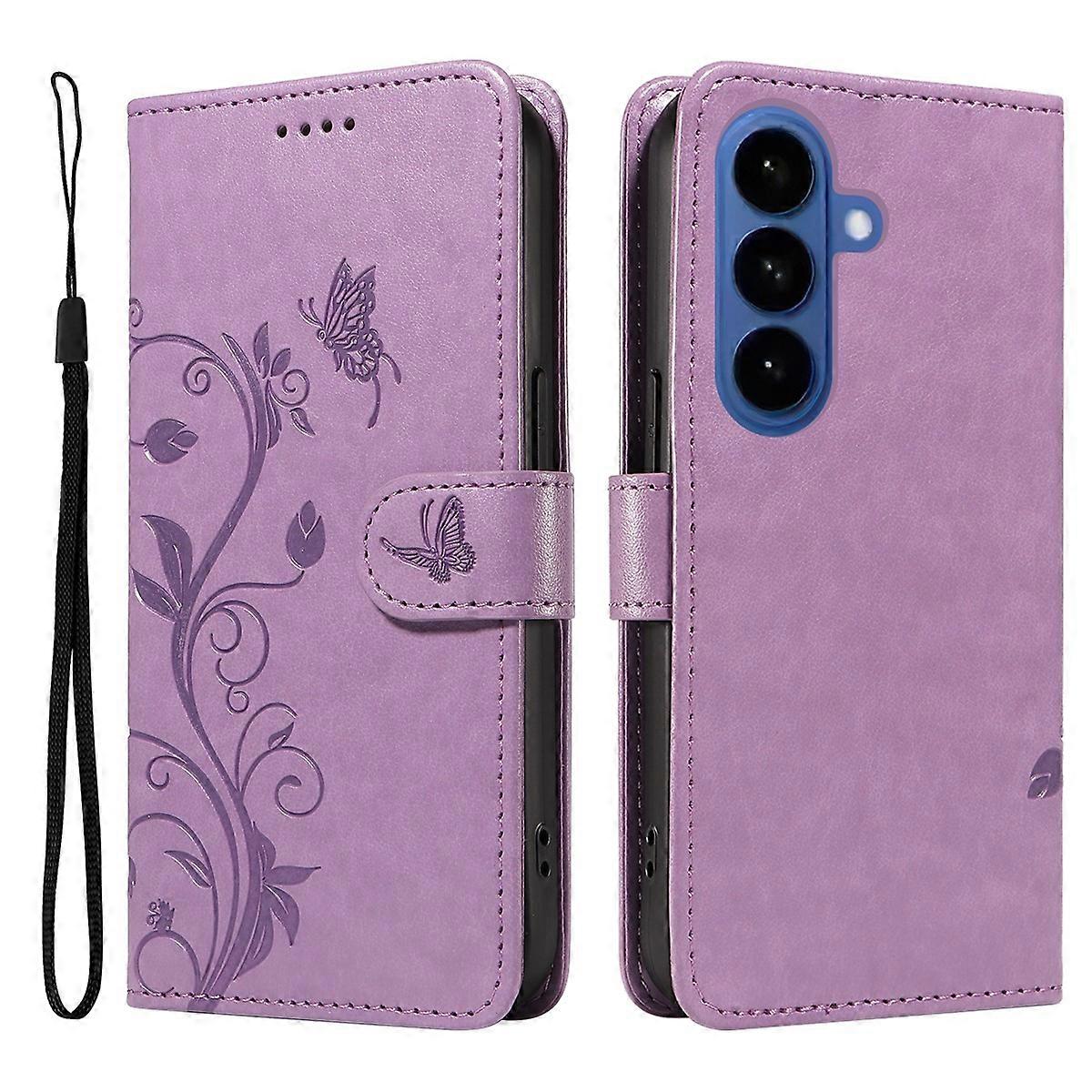 For Samsung Galaxy S26+ PU Leather Cases Flower Pattern Wallet Stand Phone Cover with Strap