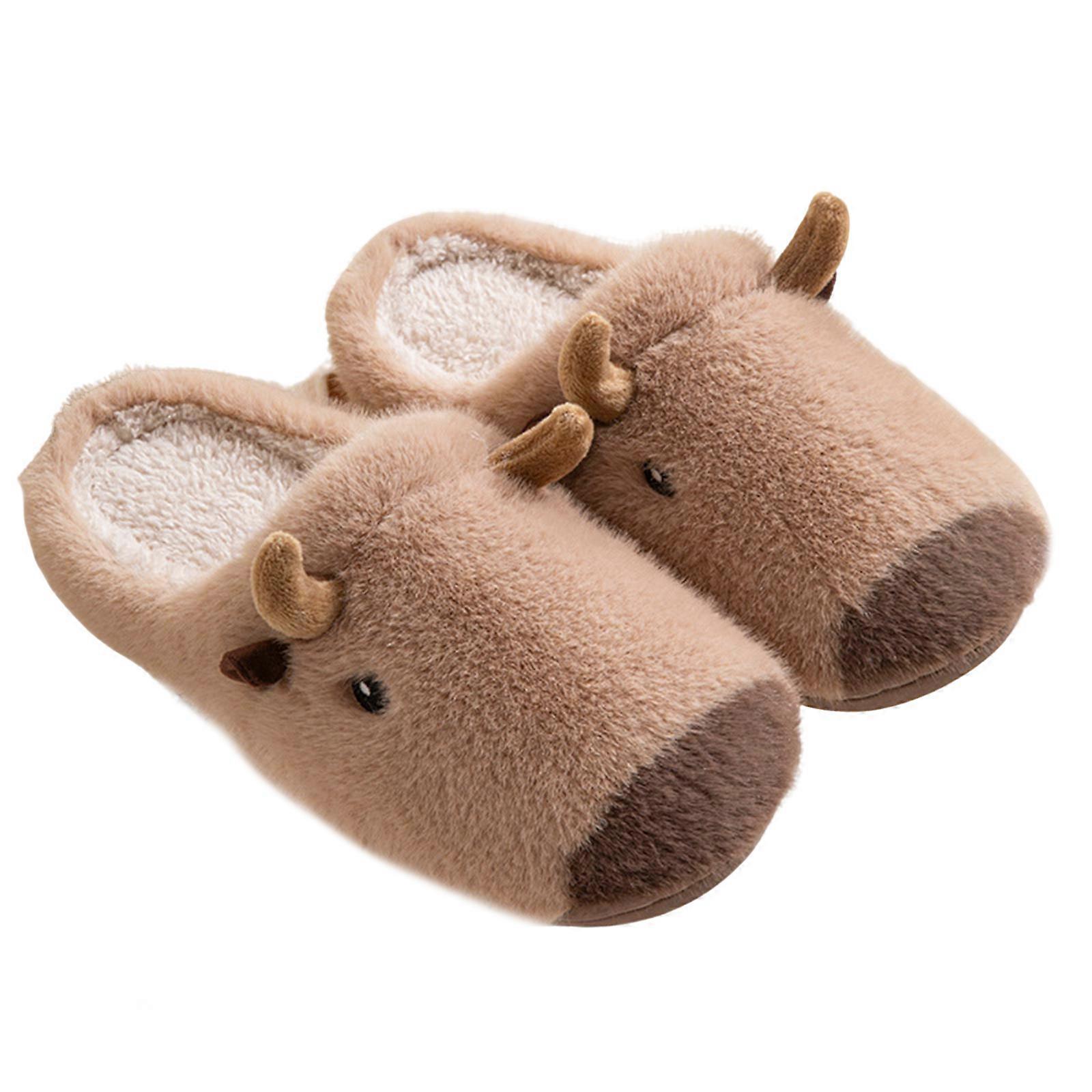 Warm Fuzzy Plush Cartoon Capybara Design Indoor Slippers With Nonslip Soles Women Men House Shoe Footwear For Home Use Khaki C