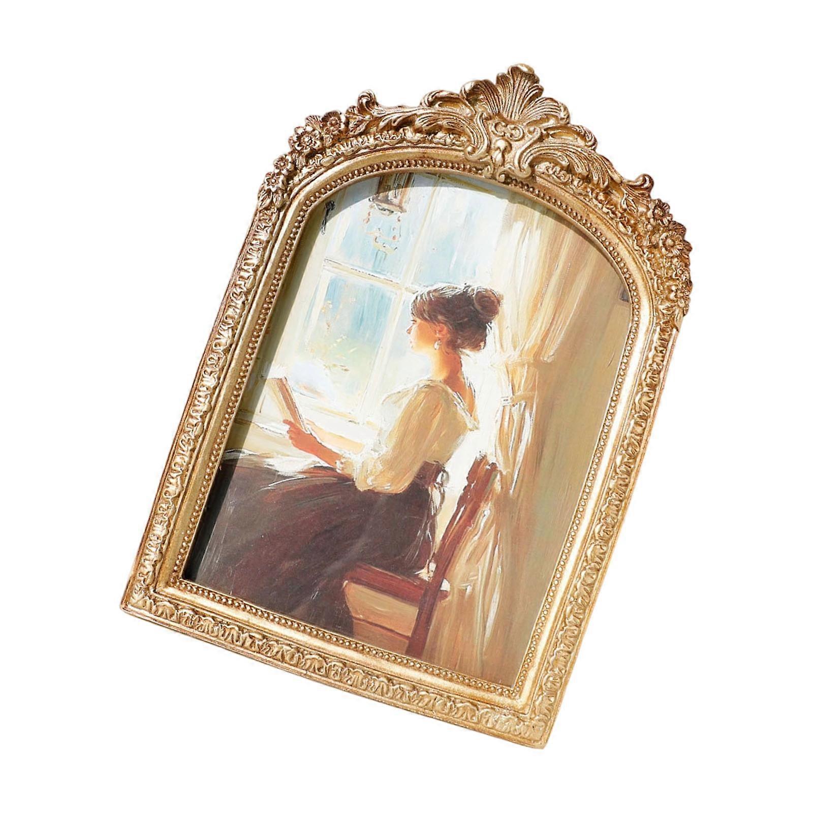 Florals Embossed Resins Picture Holder Antique Arch Photo Frame Includes Double Display Option Wall Hanging or Tabletop 8 inch