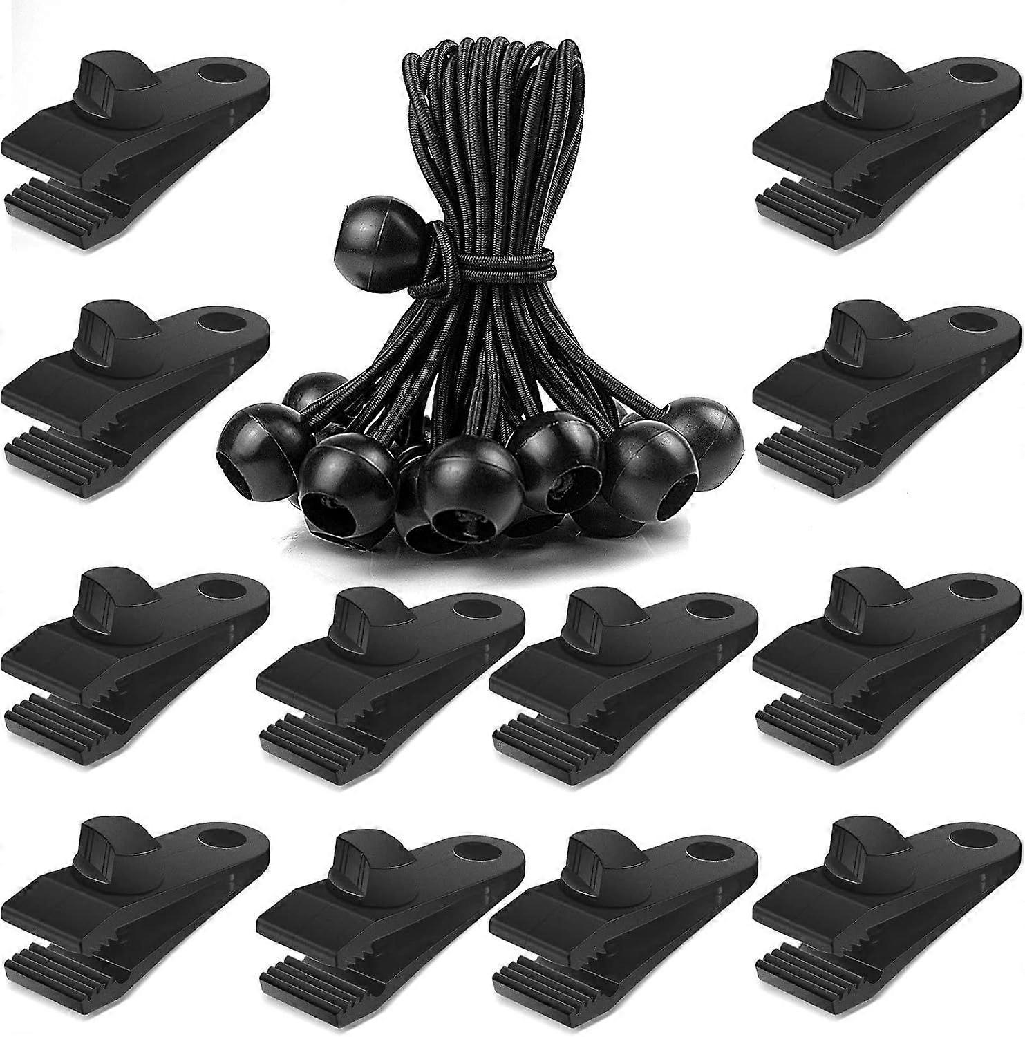 24 Pcs Tarp Clips and Ball Bungee Cords -Tarp Clamps Heavy Duty Lock Grip Tent Pool Awning Fasteners Clips with 6 Inch Bungee Ball Cords for Outdoor C