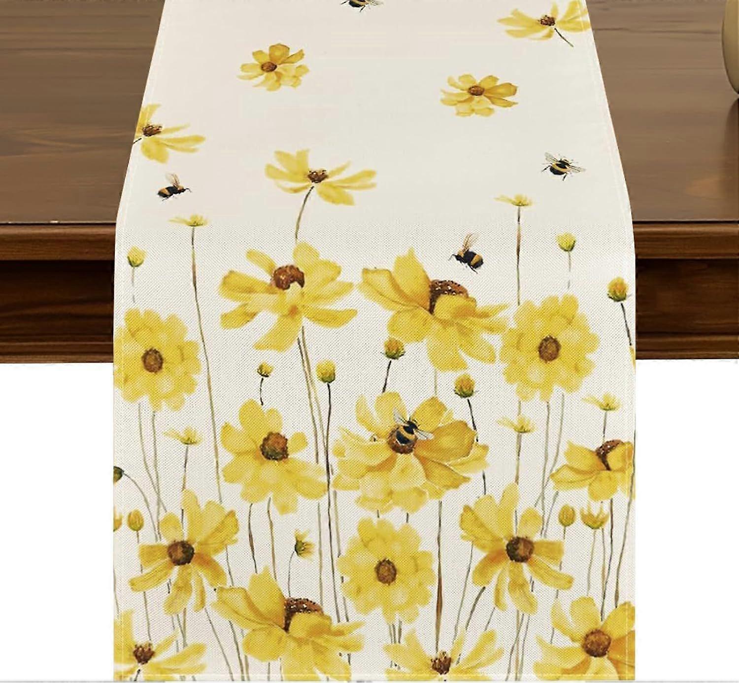Yellow Daisy Bees Summer Table Runner,72 Inches Seasonal Fall Holiday Kitchen Dining Table Decoration for Home Party Decor ZQ07