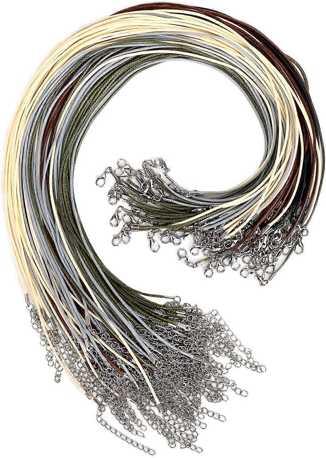 Qucyy Necklace Cord, 100 Pcs Necklace String Rope with Clasp, 20 Inches Waxed Cotton Cord Necklace Bulk for Charms Pendants, Bracelets, Necklaces (Ear