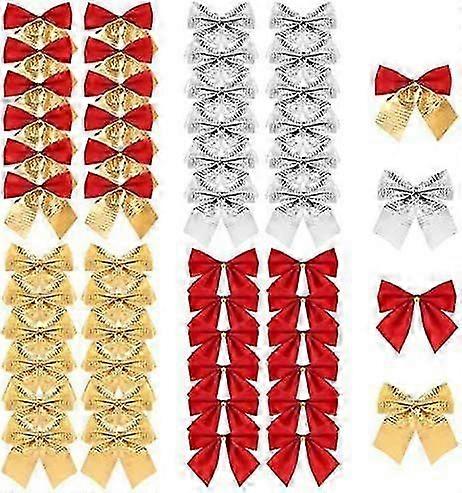 48 Pieces Christmas Ribbon Bows Ornaments Xmas Tree Bowknot Decoration Presents Wrapping Craft Supplies(4 Colours) Edition 1205
