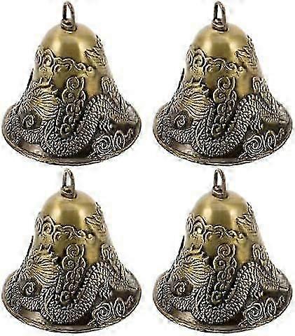 4pcs Vintage Bronze Alloy Christmas Bells Dragon Phoenix Pattern Rustic Hanging Metal Jingle Ornaments for Holiday Tree Decoration Edition 1205