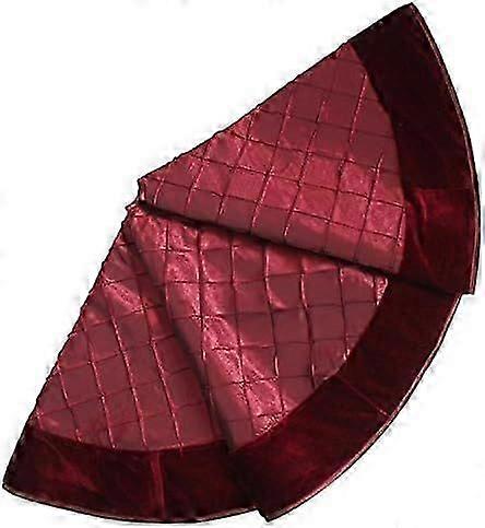 36" Handcraft pintuck faux silk with Velvet border Christmas tree skirt in Burgundy color P4691 Edition 1205