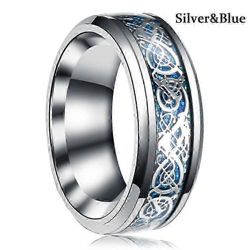 Dragon Inlay Ring for Men in Stainless Steel, 8mm Width & 8 Colors