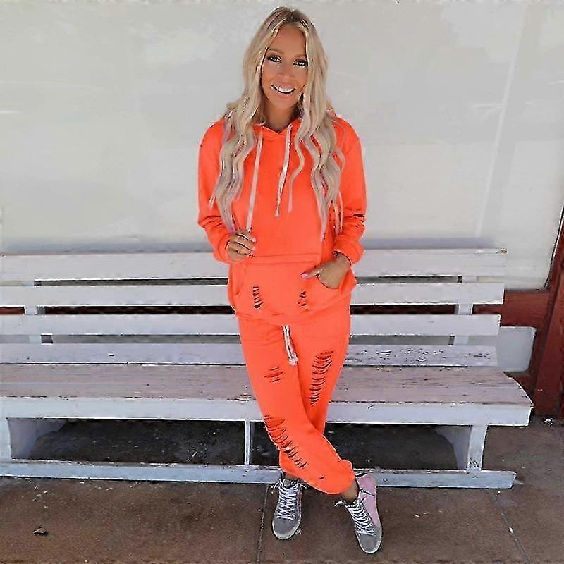 Casual Hooded Set for Women: Solid Color Top and Pants Loose Fit