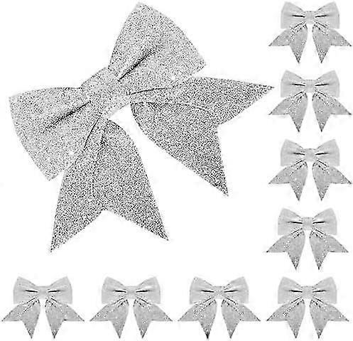 8 Pack Glitter Silver Christmas Bows - 15cm Wide, Silver Bows for Tree Decorations, Gift Wrapping, Crafting, Ornaments & Wreaths Edition 1205