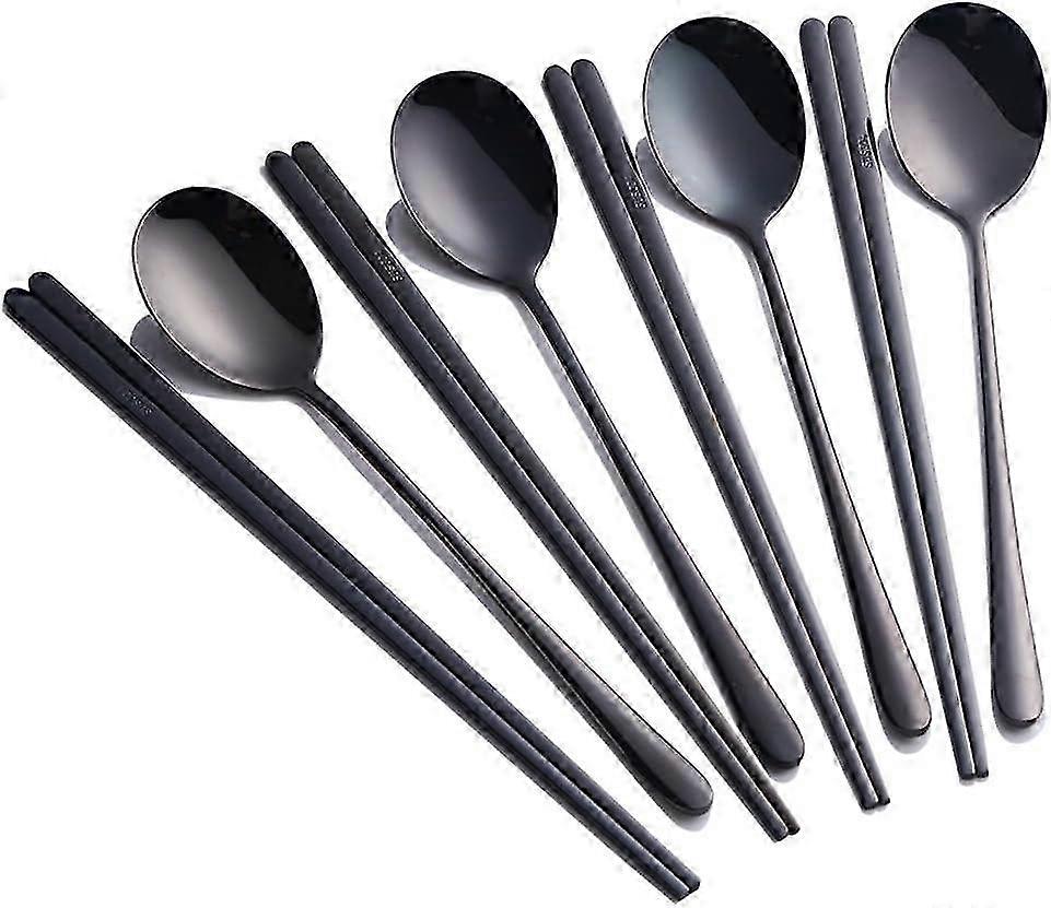 Stainless Steel Korean Chopsticks Set with Spoons, Service for Four