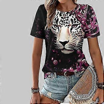 Women's Funny Graphic Tee: Cheetah Print Short Sleeve Casual Summer T-Shirt