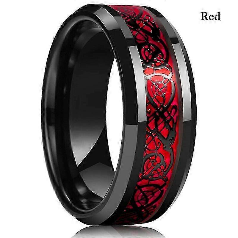 Stainless Steel Dragon Ring for Men, 8mm Width with Carbon Fiber Inlay and 8 Colors