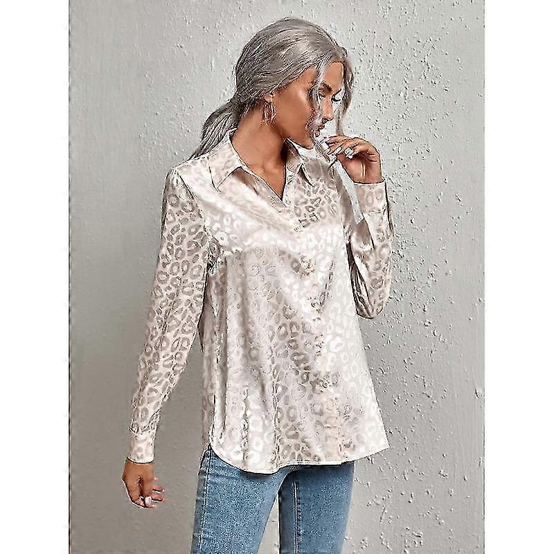 Women's Polo Shirt Long Sleeve Leopard Print Casual Spring Blouse