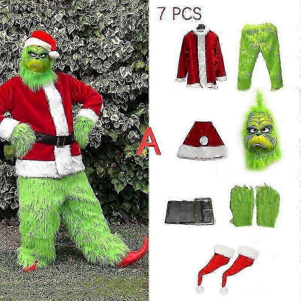 Adult Green Monster Christmas Costume Set with Mask and Accessories