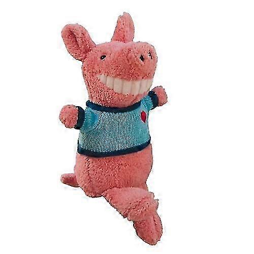A cute, grinning piglet doll with big teeth, perfect for sleeping as a pillow; blue clothes.