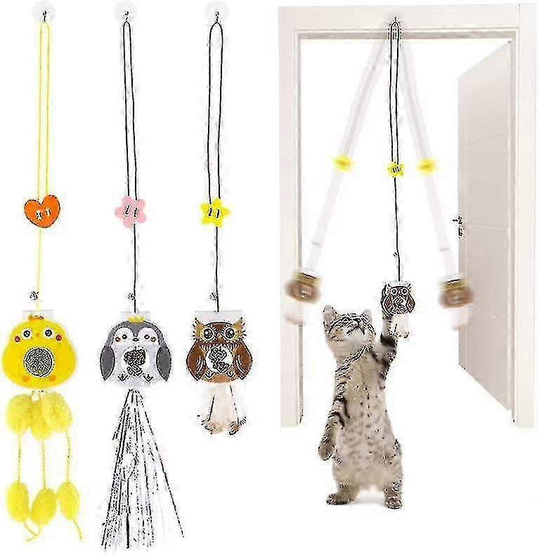 Cat toy door hanger, includes catnip, interactive cat toy, elastic cord, and a 200cm adjustable hanging rope. 3 pieces.