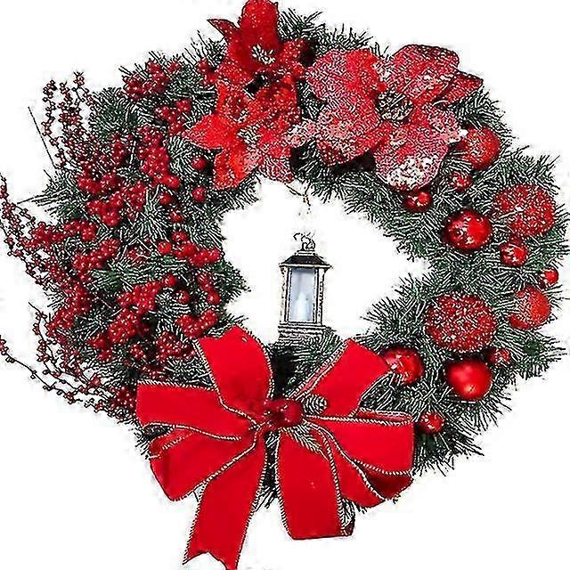 Wreath With Lamp Bow Ball Big Red Flower Navidad Party Wall Door Window Fireplace Staircase Balcony Garden Wreath 2024-NEW_ww