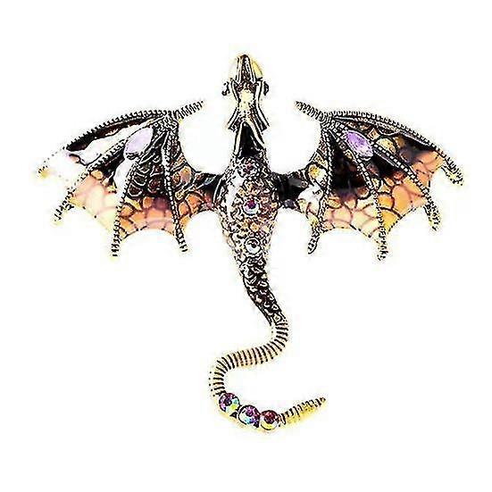 Vintage Dragon Lapel Pin for Blazer, Oil-dripping Flying Rhinestone Enamel Brooch Unisex Jewelry Gift