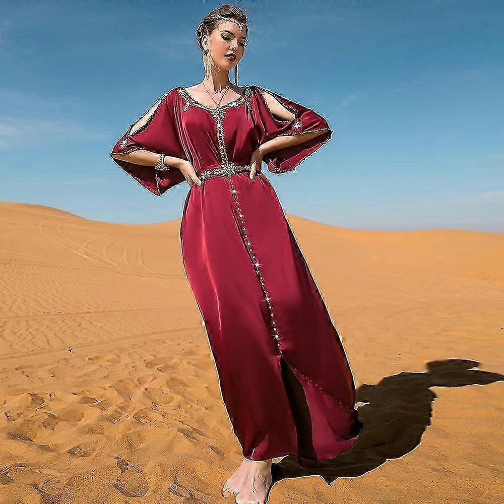 Muslim Party Dress for Women Burgundy Off Shoulder Slim Fit Rhinestone Gown