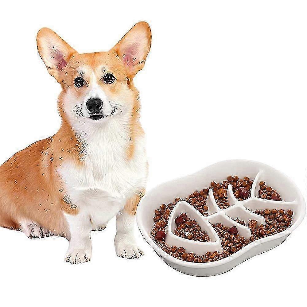 Slow Eating Dog Bowl for Medium Dogs - Heavy Ceramic Dish to Prevent Gulping Food