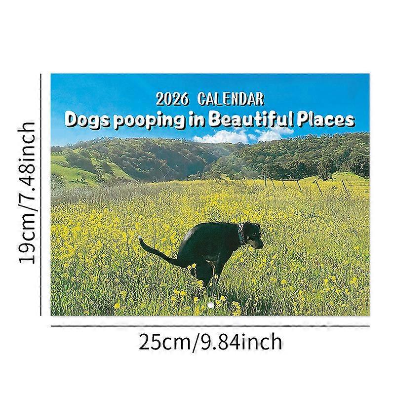 Pooping Dog Calendar 2026 Large Monthly Grid Planning With Important Note Space Funny Gifs For Dogs Lover's Home Decora