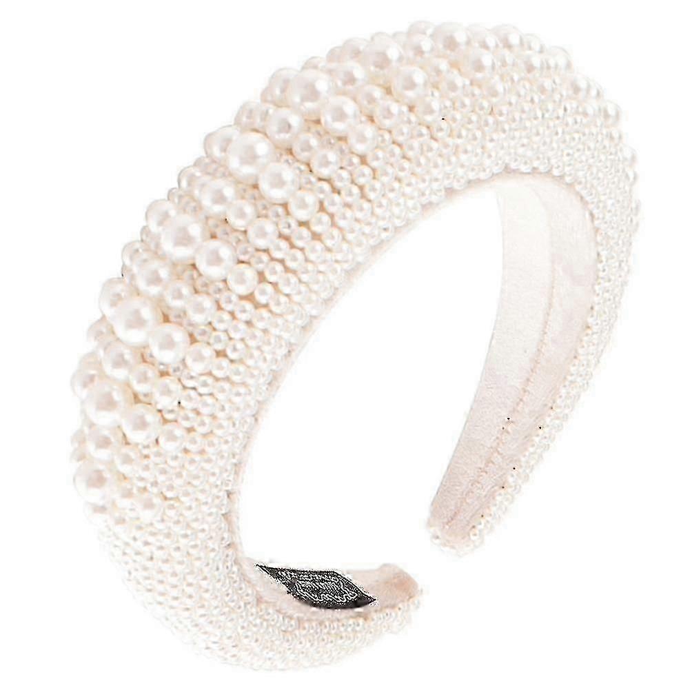 Pearl Padded Headband For Women - Retro Hair Accessory With White Beaded Design_pl